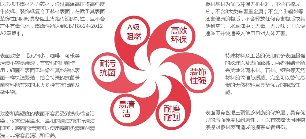 是一種集不燃、環保、抗菌、易清潔、快速模塊化安裝施工等特性于一體的綠色環保材料,以其優越的特性適用于對防火、環保以及快速施工要求較高的建筑領域。