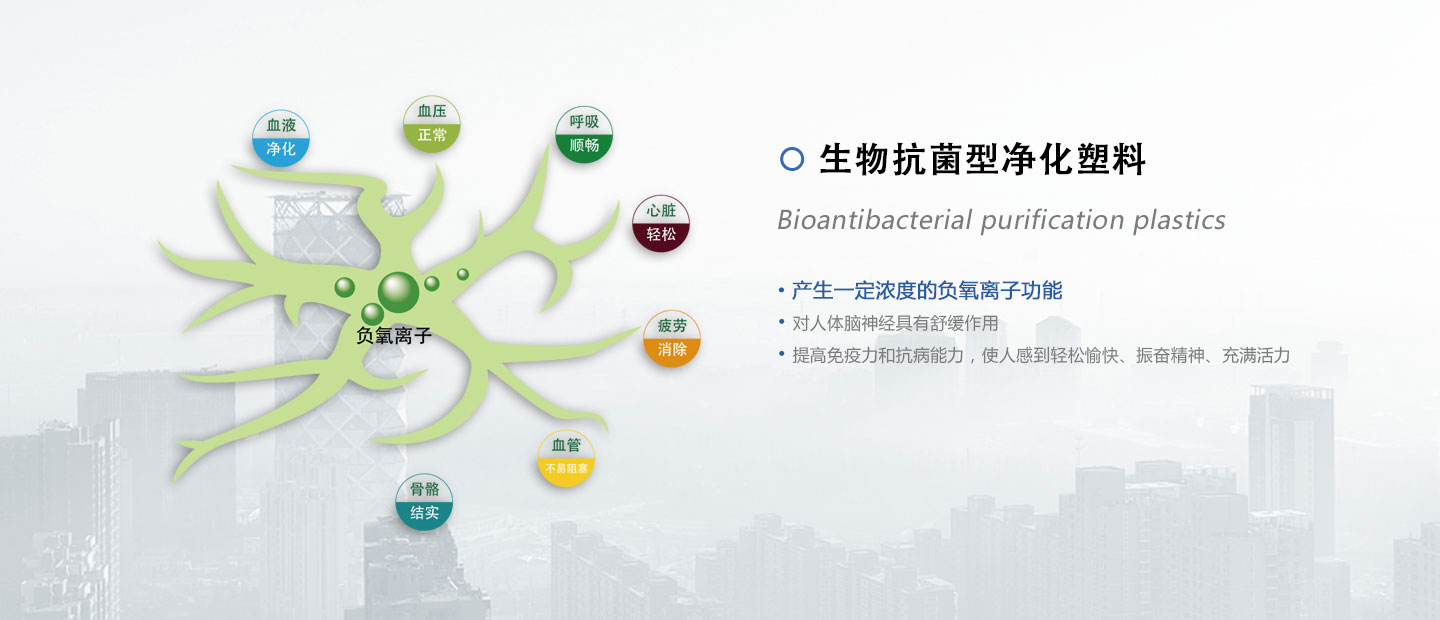生物抗菌型凈化塑料采用改性PP (聚丙烯)塑料、改性PE(聚乙烯)塑料的凈化粒子為原材料,融合國際先進的加工工藝而成。